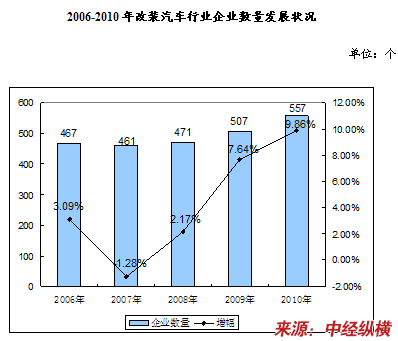 一、2006-2010年改装汽车 行业 企业数量发展状况