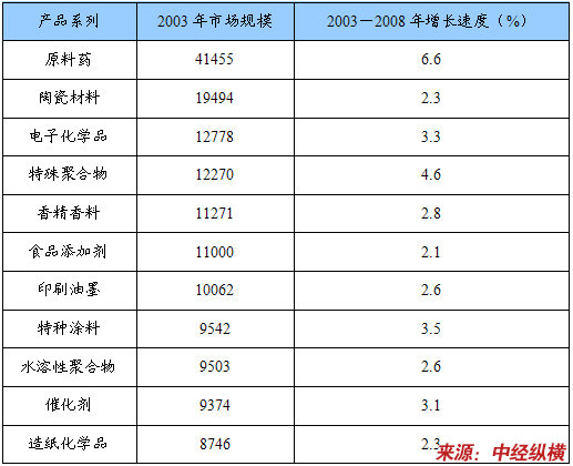 美国、西欧和日本主要精细与专用化学品市场规模