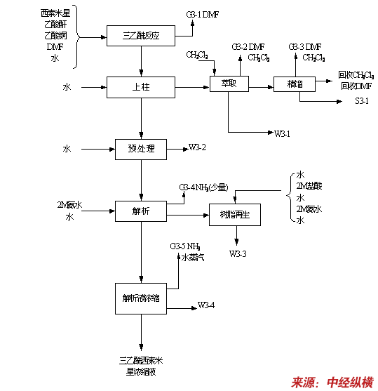 三乙酰反应工段工艺流程和“三废”排放点位图
