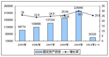3、2009年投资持续快速增长,涉及民生领域的投资增长明显加快。2010年一季度,全社会固定资产投资35320亿元,同比增长25.6%,