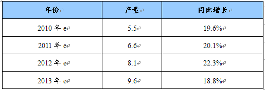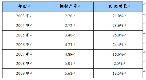 2010-2013年我国钢材产量预测表 单位:亿吨
