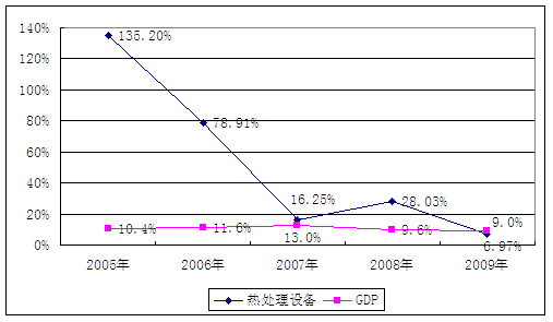 2005-2009年热处理设备产业与宏观经济周期相关性
