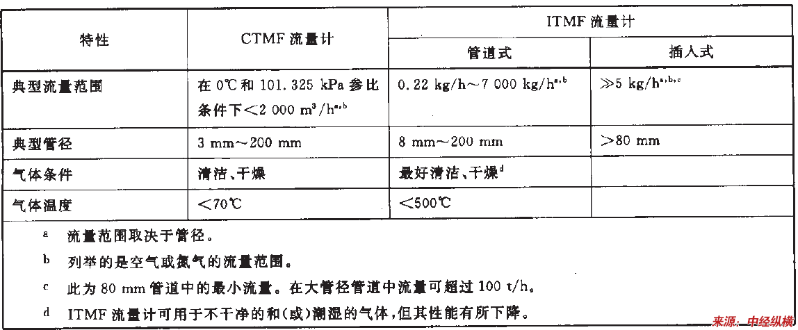 依据国家标准化管理委员会2006年发布的ISO14511:2001《封闭管道中流体流量的测量-热式质量流量计》中的规定,TMF流量计初步选型依据如下: