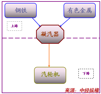 凝汽器 行业 的上游产业主要以钢铁和有色金属为主,下游产业主要以汽轮机为主。