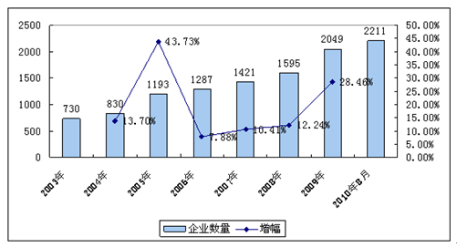 一、2003-2010年 行业 企业数量发展状况
