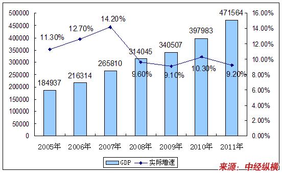 2005年-2011年我国GDP增长变化图 单位:亿元