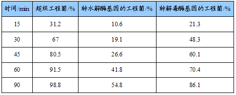 中国科学院的乔传令等从对杀虫药剂有抗性的蚊虫中分离到的扩增500~800倍的酯酶基因,即酯酶B1,1.3kbp片段,并将其克隆到pRL-439质粒中,构建pRL-B1重组质粒,再用新构建的pRL-B1重组质粒转化大肠杆菌(E.coliHB101),并在大肠杆菌中大量表达,制得带有含该重组体的酯酶基因的细菌,即对有机磷、氨基甲酸酯、有机氯类酯化合物有降解作用的脱毒工程菌。基酯酶表达量高,脱毒功能显著,已申请专利(专利号CN1211618)。另外,他们分别克隆解毒酯酶和水解酶的基因(bl和opd);将此基因分别克隆到表达载体pETDuet-1上,构建融合表达载体pETDuet-b1-opd;最后转化得到重组菌株并进行诱导培养。由于上述超级工程菌经诱导表达后而制备得到解毒酶(专利号CN1651571)。该超级工程菌和解毒酶可以同时降解马拉硫磷(30min降解67.0%)、对硫磷(30min降解66.7%)、高效氯氰菊酯、三氯杀虫酯等有机酸酯和有机磷类农药;可以用于有机磷中毒温血动物的解毒。该超级工程菌和解毒酶为利用真核和原核生物等自然资源对残留在水源、土壤等中的农药等有毒有害化合物污染进行生物治理提供了一条新途径。