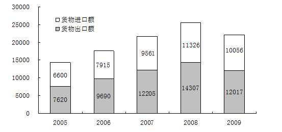 2009年国内进出口总额全年下降,自11月份由降转升。全年进出口总额22073亿美元,比上年下降13.9%。11月份进出口总额同比涨幅由负转正,当月增长9.8%,12月份增长32.7%。去年全年的出口12017亿美元,下降16%;进口10056亿美元,下降11.2%。进出口相抵,去年的贸易顺差1961亿美元,比上年减少994亿美元。