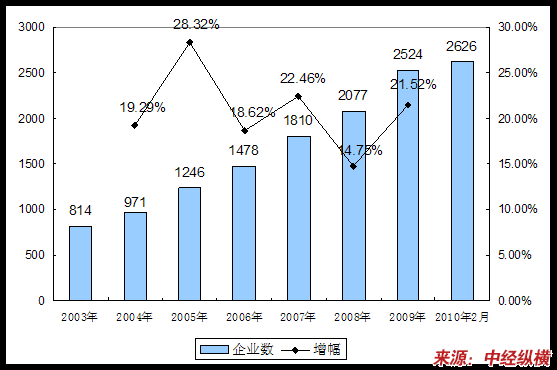 数据可以看出,03-09年我国专项化学用品制造市场增长速度很快,虽然07年有所减缓下降。但08年有快速增长起来。未来几年我国专项化学用品制造