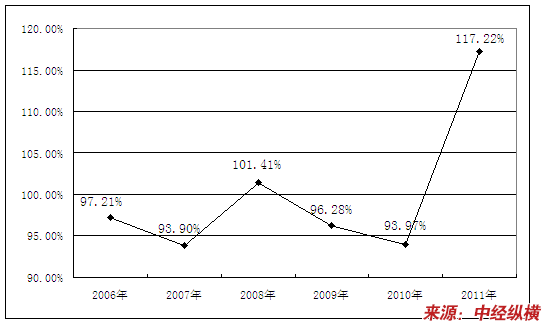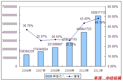 由数据可以看出,06-11年我国灭火剂产品所属 行业 市场增长速度很快,虽然08-10年有所下降,但是10-11年快速增长。未来几年我国灭火剂产品所属 行业 仍将保持快速增长。