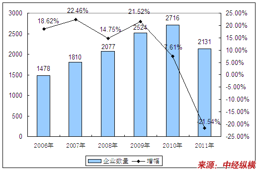 2006-2011年专项化学用品制造 行业 企业数量发展状况