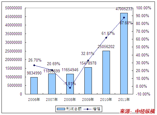 2006-2011年专项化学用品制造 行业 利润总额发展状况