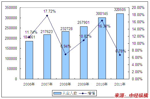2006-2011年专项化学用品制造 行业 从业人员发展状况