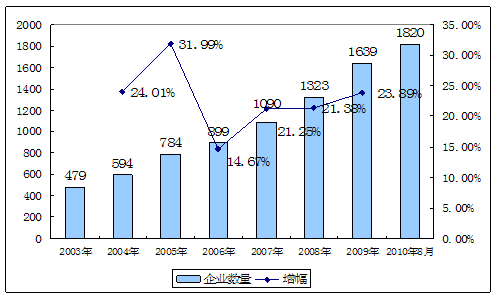截止到2010年8月 行业 规模以上企业数量达到1820个,比2003年增长了4倍左右;截止到2010年8月, 行业 内规模以上企业销售收入达到984.1亿元。液压和气压动力机械及元件制造业在国民经济中占有很重要的地位。随着科学技术的发展,国内产业从普通装备向相关高端产品升级,以及国际装备制造业向中国的转移,液气密等技术含量高的配套产业面临着难得的发展机遇。大规模铁路建设、中部崛起、城市化进程加速,工程机械 行业 面临良好的内部环境,将对液压气压动力机械及元件制造业带来较大的需求增长,促进液压气压动力机械及元件制造业的快速发展。