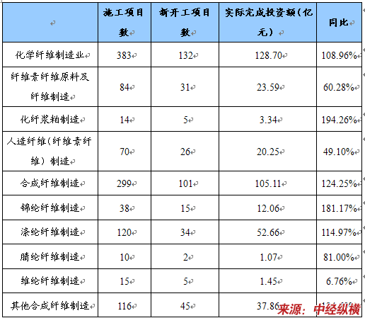 近两年,化纤 行业 投资热情高涨。1~3月,化纤 行业 施工项目数达到383个,新开工项目132个,实际完成投资额128.7亿元,同比迅速增加1.1倍。锦纶、涤纶和其他合成纤维 行业 的固定资产投资额增长均超过了100%。