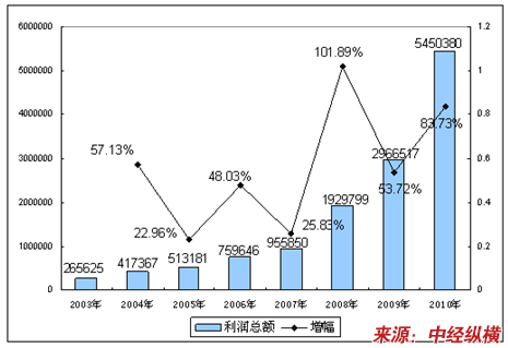 五、2003-2010年 行业 利润总额发展状况