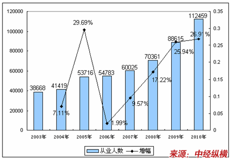 二、2003-2010年 行业 从业人员发展状况