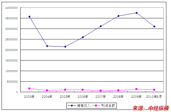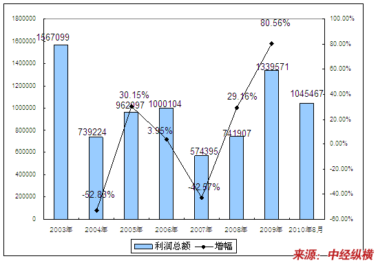 五、2003-2010年8月 行业 利润总额发展状况