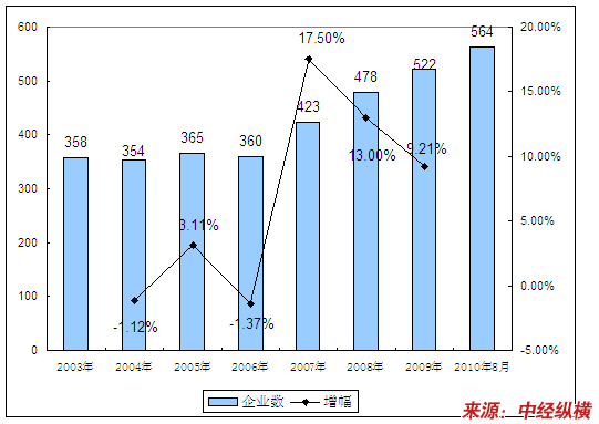 一、2003-2010年8月 行业 企业数量发展状况