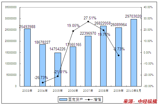 三、2003-2010年8月 行业 资产总计发展状况