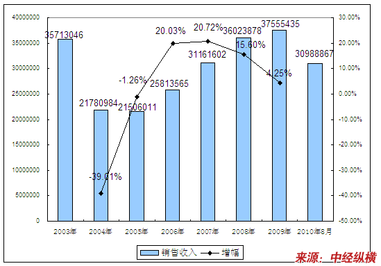 四、2003-2010年8月 行业 销售收入发展状况