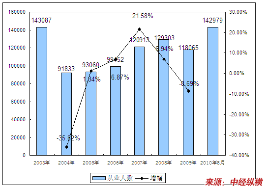 二、2003-2010年8月 行业 从业人员发展状况