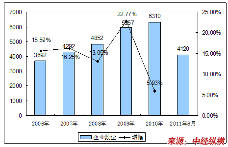 一、2006-2011年6月 行业 企业数量发展状况