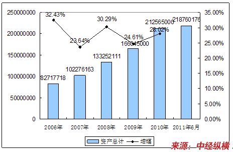 三、2006-2011年6月 行业 总资产发展状况