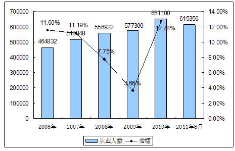 二、2006-2011年6月 行业 从业人员发展状况