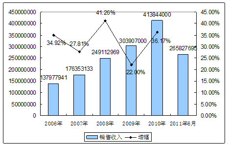 四、2006-2011年6月 行业 销售收入发展状况