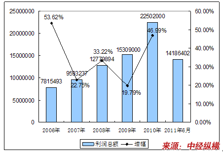 五、2006-2011年6月 行业 利润总额发展状况