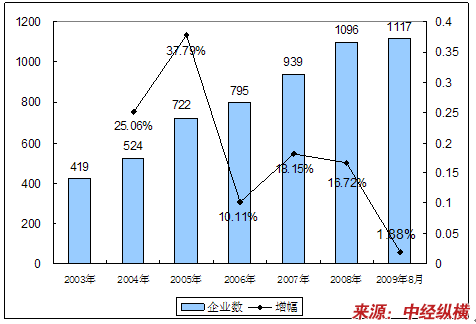 一、2003-2009年8月 行业 企业数量发展状况