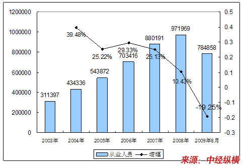 二、2003-2009年8月 行业 从业人员发展状况
