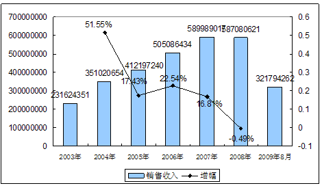 四、2003-2009年8月 行业 销售收入发展状况