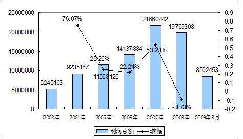 五、2003-2009年8月 行业 利润总额发展状况