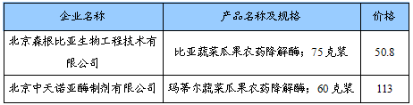 第四节 农药降解酶国内市场重点企业产品价格比较
