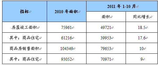 2010-2011年房地产开发和销售主要指标完成情况 单位:万平方米