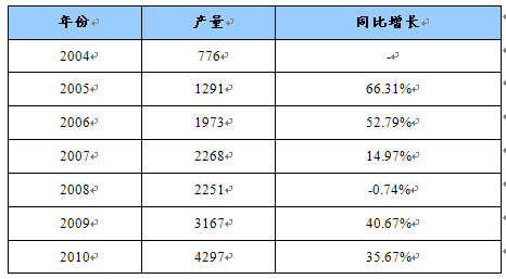 2004-2010年中国撬装式调压站产量统计 单位:台
