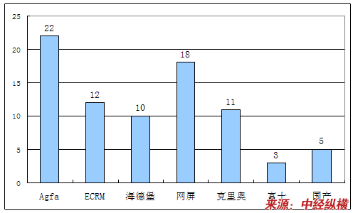 62家样本企业中有照排机的有50家其他包装,没有照排机的企业中,除1家因全部采用CTP出版而没有照排机外,其他企业印前部门基本以设计排版为主,采取外协出片的方式。这50家企业约有照排机80台,设备品牌包括Agfa、网屏、ECRM、柯达(克里奥)、海德堡及富士胶片等公司及国产激光照排机人物,其中Agfa照排机22台,其次是网屏、ECRM、柯达(克里奥)和海德堡,分别有18、12、11、10台,国产照排机仅5台,且绝大多数企业只有1台照排机。由于报纸印刷企业的出报版面多立体印刷,而且时效性要求高,因此他们的照排机拥有量普遍较多,一般都在3台以上。在10家有照排机的报纸印刷企业中有2家企业拥5台照排机,还有1家企业有7台。照排机配置的RIP有方正、海德堡、网屏、柯达(克里奥)、Agfa等品牌的产品,其中用得最多的是方正世纪RIP食品包装,有用户20家,其中报纸印刷企业几乎全部使用方正RIP。