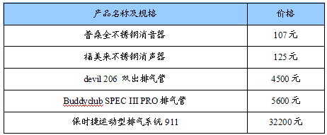 第四节 汽车排气系统国内市场重点企业产品价格比较