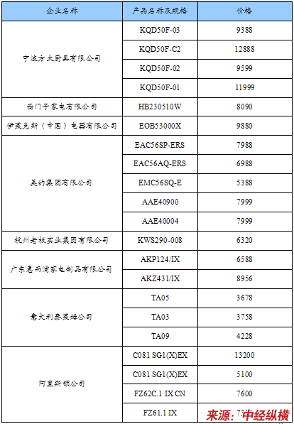 嵌入式多功能烤箱国内市场重点企业产品价格对比表