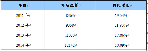 2011-2014年中国气体型多声道超声流量计产品市场规模预测表 单位:万元
