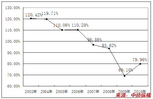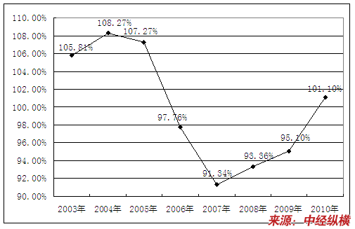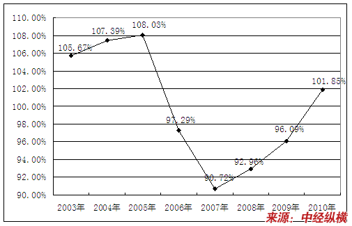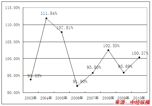 2003-2010年棉、化纤印染精加工 行业 活力系数评价