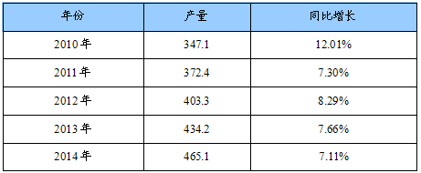 2010-2014年我国汽车前桥总成产量及同比增长预测表
