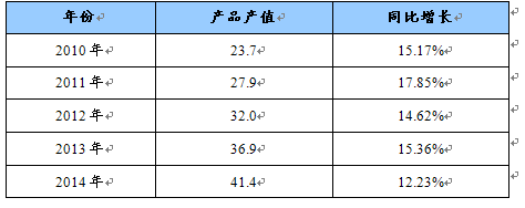 2010-2014年中国机房空调产品产值预测表 单位:亿元