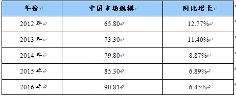 预计2016年国内市场规模达到90.81亿元,而国内同期产值仅为2.53亿元,国内产品占有率尚未达到3%。