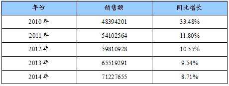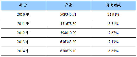 2010-2014年中国切削工具产品产量预测