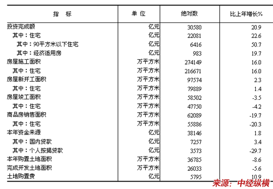 2008年全年房地产开发投资30580亿元,比上年增长20.9%。其中,东部地区18325亿元,增长17.1%;中部地区6287亿元,增长31.7%;西部地区5967亿元,增长22.7%。按工程用途分,商品住宅投资22081亿元,增长22.6%;办公楼投资1112亿元,增长7.4%;商业营业用房投资3200亿元,增长14.9%。