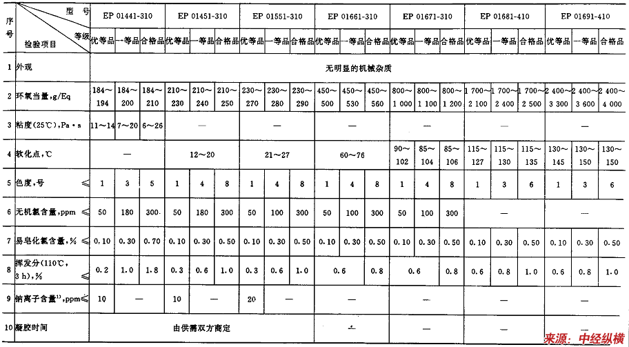 双酚-A型环氧树脂的技术要求应符合下表规定。