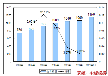 一、2003-2009年8月 行业 企业数量发展状况